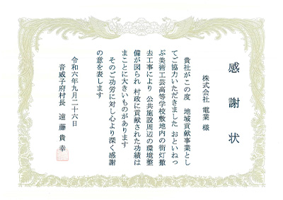 地域貢献プロジェクトとして継続的に取り組んでいる『野球少年の夢と未来へのサポート活動』として継続的に野球ボールの寄贈や施設照明の点検、清掃等を行っており、電業は今後も色々な活動の幅を広げ地域に根付いた企業を目指します。
