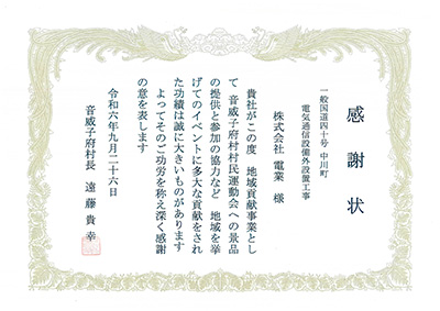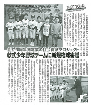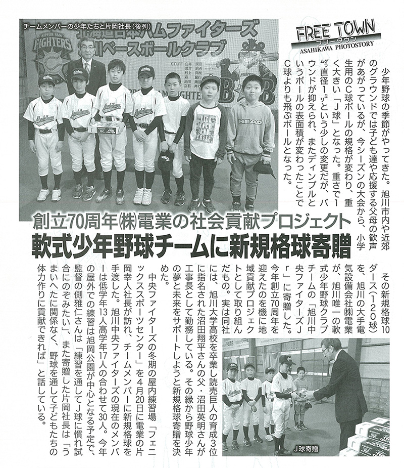 地域貢献プロジェクトとして継続的に取り組んでいる『野球少年の夢と未来へのサポート活動』として継続的に野球ボールの寄贈や施設照明の点検、清掃等を行っており、電業は今後も色々な活動の幅を広げ地域に根付いた企業を目指します。