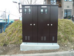 一般家庭の場合は、柱上で降圧された電圧200/100Vで家庭内に引き込まれていますが、ビルや工場、商業施設などの一度に大量の電力を消費する施設では、6600Vや22000V、66000Vといった高電圧で建物内に引き込まれています。その高電圧の電気を建物内の全ての電気機器の容量に見合った変圧器などを含む受変電設備を設置することにより、100Vや200Vの電圧に降圧し、施設内でも一般家庭と同じように電灯やコンセントなどを使えるように施工いたします。